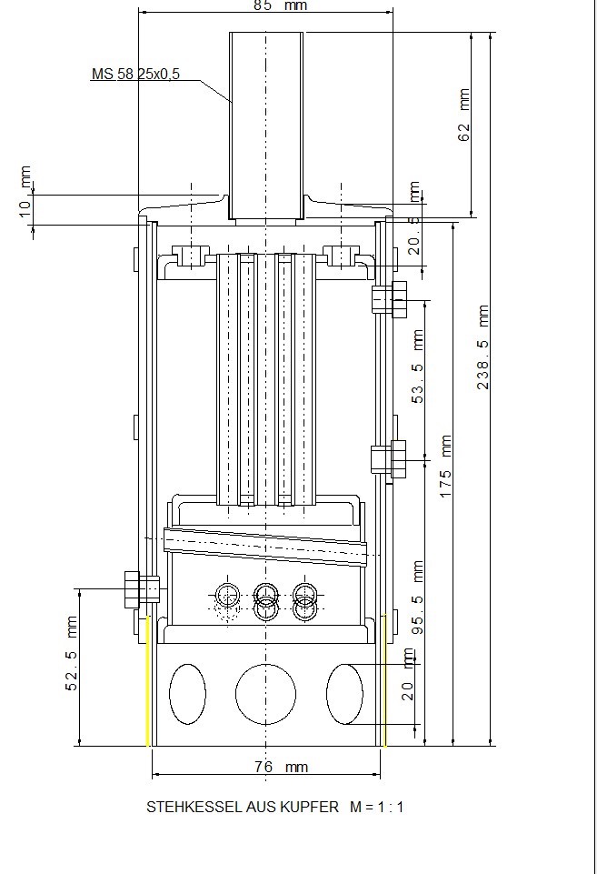 Für den Betrieb meiner Dampfmaschinen wollte ich einen Kessel bauen und habe zunächst den Entwurf gezeichnet.