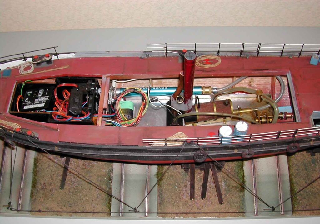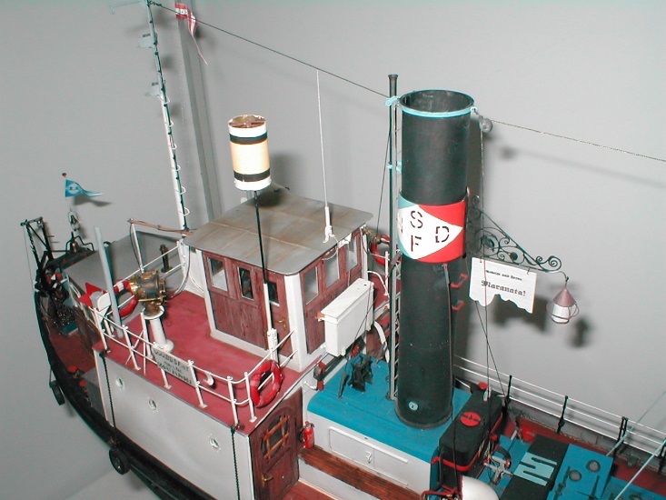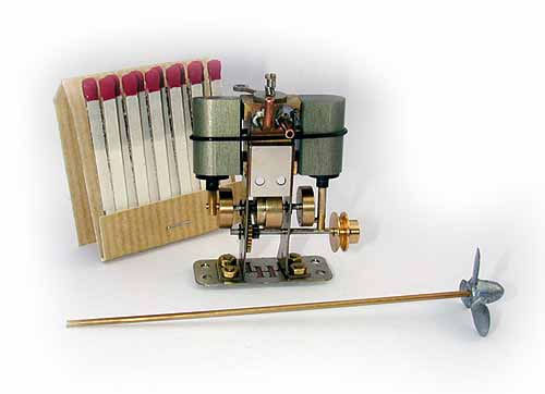 Da in dem historischen Donauschlepper eine funktionierende Dampfmaschine für den Vortrieb sorgte, wollte ich in meinem Modell auch eine Dampfanlage einbauen. Um mit dem vorhandenen Platzangebot das Auslangen zu finden und vor allem um Gewicht zu sparen, entschied ich mich für die kleine oszillierende zweifachwirkende Dampfmaschine „Andreas“ von Lutz Hielscher.