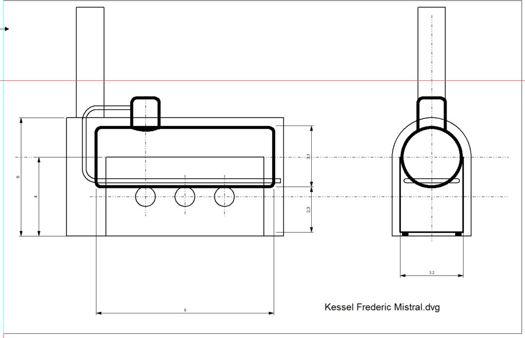 Der Kessel entstand anhand der von mir angefertigten Zeichnung aus Kupferfittings vom Baumarkt. Auf ein Sicherheitsventil konnte ich verzichten, da die oszillierende Maschine durch die elastische Lagerung der Zylinder dies nicht notwendig macht, und der Überdruck am Zylinderspiegel entweichen kann. Die Fahrfunktion (vorwärts -stopp – rückwärts) wird am Maschinenventil durch ein Miniservo gesteuert.
